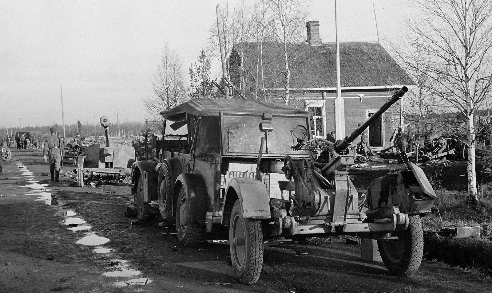 Pohjois-Suomeen kesällä 1941 saapuneella saksalaisella AOK Norwegenin (myöh. AOK Lappland) ilmatorjuntajoukoilla oli käytössään useita kymmeniä, keveitä ilmatorjuntatorjuntatykkejä (2cm Flak 30 ja 38). Nämä kevyet ilmatorjuntatykit oli tarkoitettu lähinnä kohteiden lähitorjuntaan. Niitä käytettiin myös satunnaisesti jalkaväen tukiaseena, vihollisen elävää voimaa, sekä panssaroimattomia kohteita vastaan.